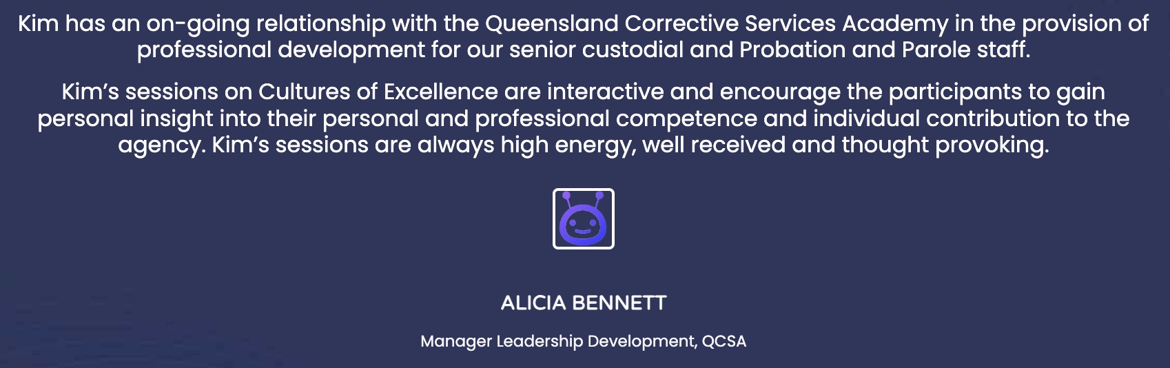 Organisational outcomes linked with improved cultures, such as increased engagement, better productivity, reduced conflict and absenteeism, better press, improved organisational narrative (because culture is largely built on shared stories and understanding of the environment we operate in), all start with asking your people what is going on for them. Listening to what they say and responding in a future-focused, solutions-oriented, collaborative way.